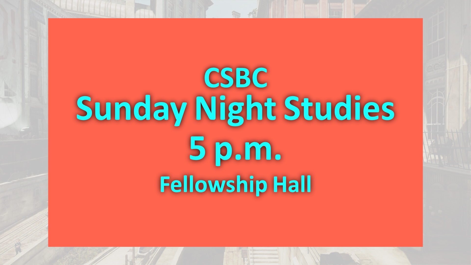 We will have our Sunday Night Studies this Sunday night at 5 p.m. in the fellowship hall.