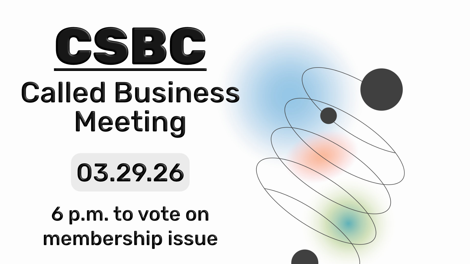 There will be a special called business meeting to discuss an important membership issue this Sunday, March 29, at 6 p.m.